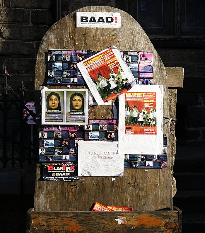 브롱스예술·춤아카데미(Bronx Academy of Arts and Dance, BAAD)는 지난 20년간 브롱스 지역 성소수자(LGBTQI), 여성, 무용가, 유색인종의 예술적 권리를 선도하는 데 매진해온 조직이다. 이 단체를 1998년 결성한 이래 지금껏 조직을 이끌어온 남성 무용가 아서 아빌레스(Arthur Aviles)는 빌 티 존스(Bill T. Jones)의 무용단에서 1987년부터 8년간 활동한 바 있다. 빌 티 존스는 흑인 태생으로서 백인 남성 파트너 아니 제인과 흑백 혼성 무용단을 결성한 인물로 90년 무렵 자기가 30대 후반이던 때 뉴욕에서 주목받는 위치에 있었다. 아빌레스는 발레, 컨템퍼러리댄스, 체조, 레슬링 등을 수련하여 대학 졸업 후부터 빌 티 존스 무용단의 중심 무용수로 활약하며 <뉴욕타임스> 등 춤 평단의 주목을 끌다가 돌연 자기 무용단을 결성해서 독립하였다. 올해 BAAD(바드)를 방문 인터뷰하는 자리에서 빌 티 존스와 헤어진 이유를 묻자 빌 티 존스 무용단에서의 전문 무용수로서의 갖춰진 길보다는 열려진 춤 활동에 더 끌린 때문이라는 답이 돌아왔다.